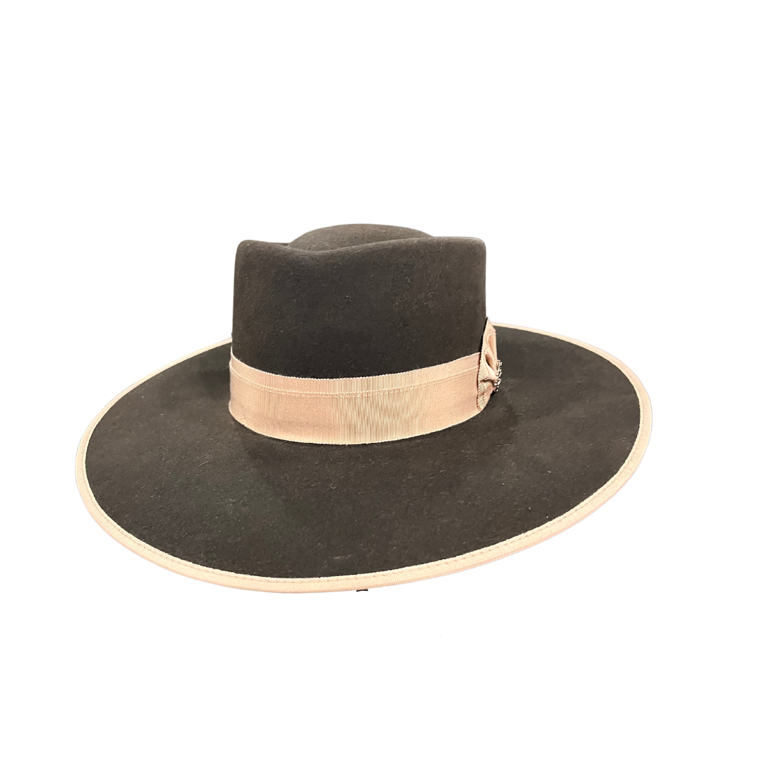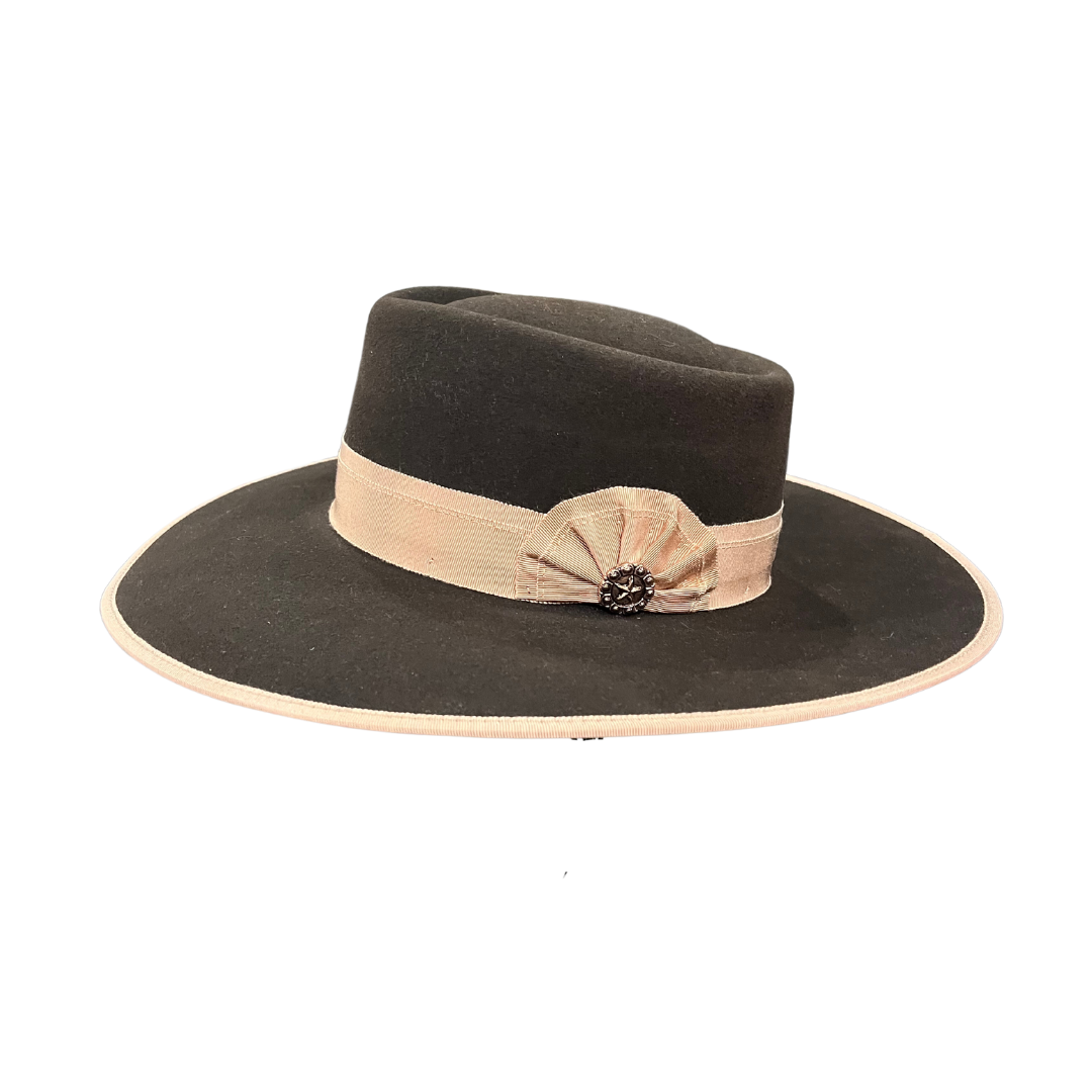 W18RDA Chocolate brown with satin bound edge and fan/Concho hat band